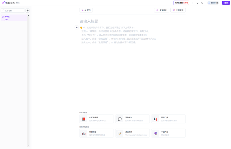 - 火山写作集成了多种写作辅助功能,帮助用户从不同方面提升写作体验。