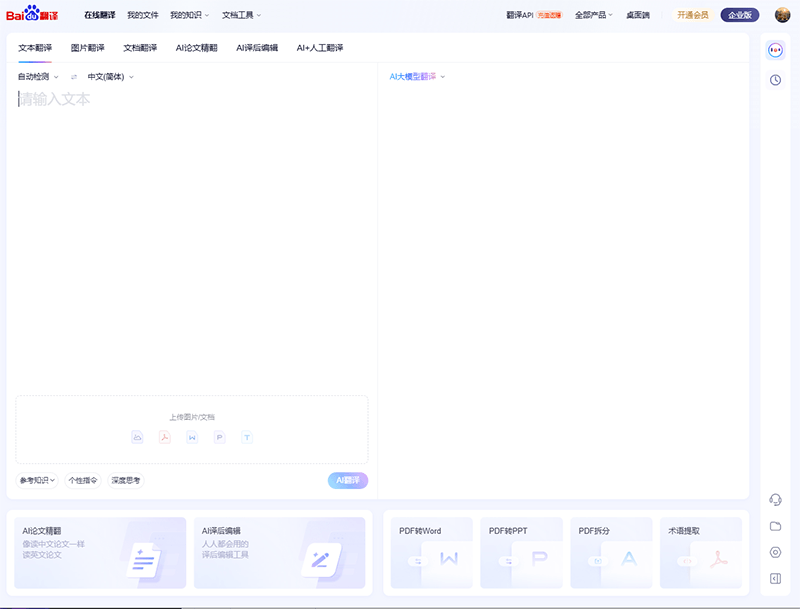 百度翻译是一个新一代的AI大模型翻译平台,旨在为用户提供一站式的翻译和外文阅读解决方案。它支持多种语言和多种翻译形式,包括文本、文档、图片等,适用于个人和企业用户。
