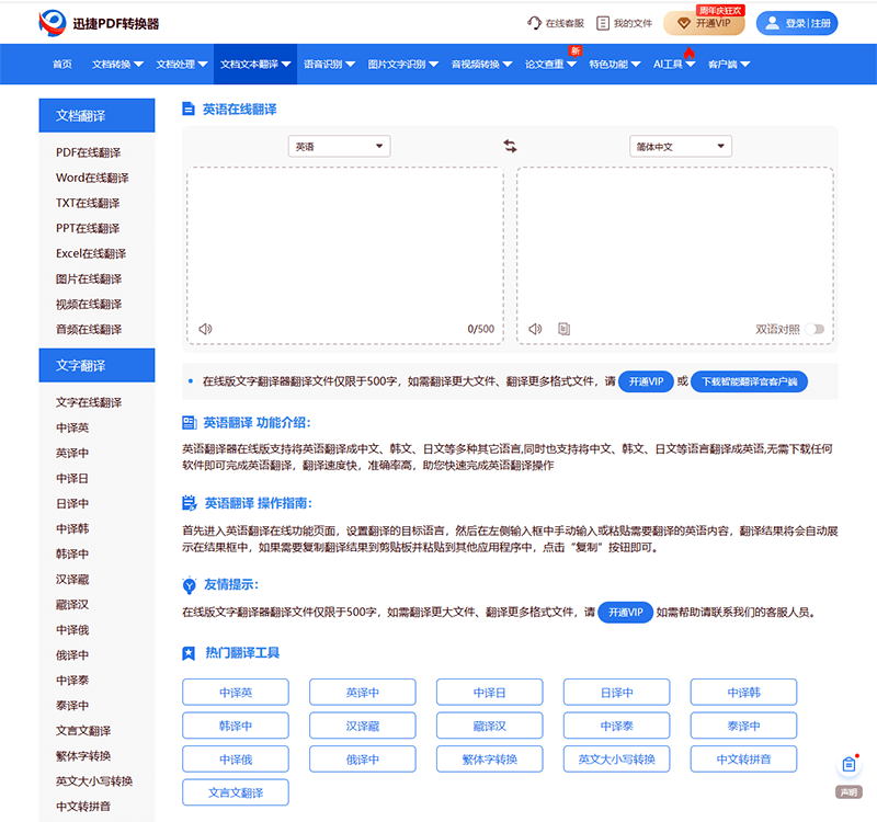 本页面介绍了一个在线英语翻译器,属于迅捷PDF转换器的在线功能之一。用户可以通过简单的操作将英语翻译成多种其他语言,或将其他语言翻译成英语。该工具无需下载软件,提供快速且高准确率的翻译服务。