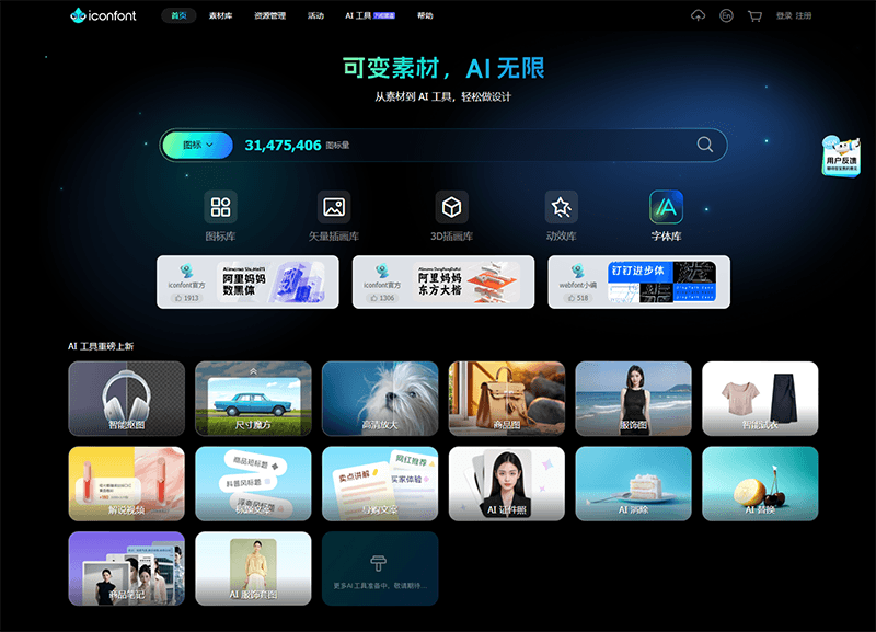 iconfont是由阿里巴巴体验团队打造的一款功能强大且图标内容丰富的矢量图标库,用户可以在该平台上进行矢量图标的下载、在线存储和格式转换等操作。