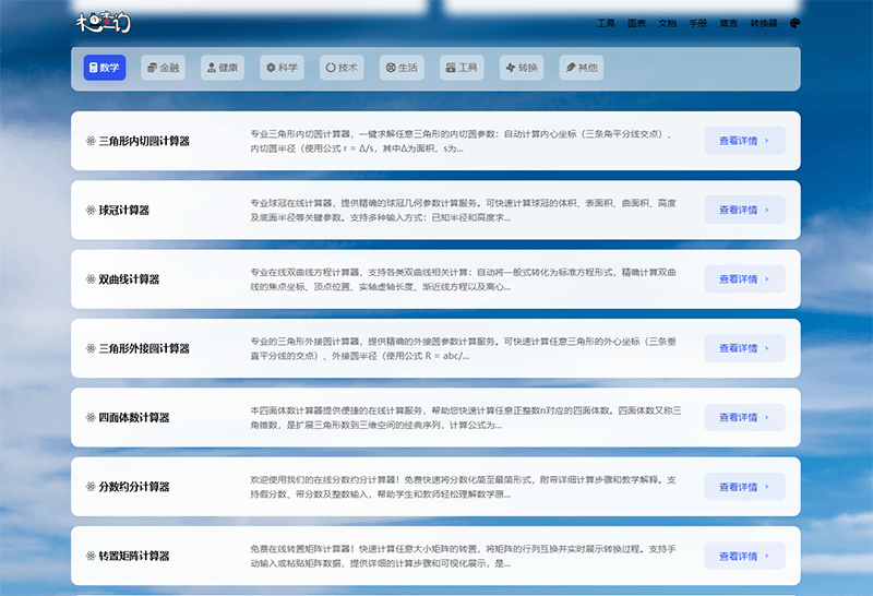 木鱼查询是一个专注于提供多样化在线查询工具的综合平台,涵盖数学、健康、科学、技术等多个领域。无论是复杂的数学公式计算、健康管理指标分析,还是科学实验数据处理和技术参数换算,木鱼查询都能为您提供高效、精准的解决方案。平台以用户需求为核心,致力于打造简洁易用的操作界面和可靠的算法支持,是学生、教师、科研人员及普通用户的理想助手。通过木鱼查询,您可以快速获取所需信息,提升学习与工作效率,满足多场景应用需求。